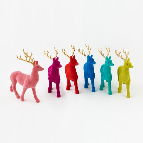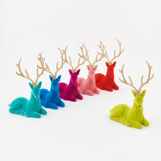 Add color and charm to your Christmas decor with these assorted flocked deer!