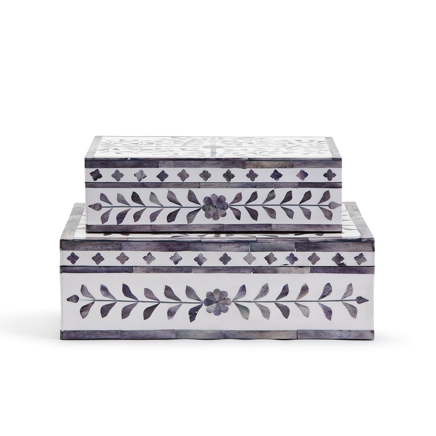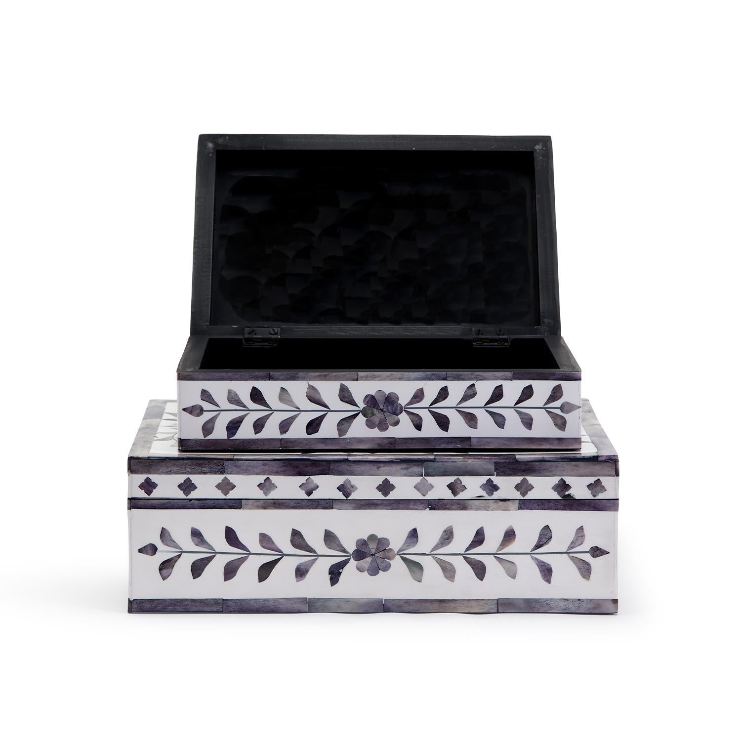 This grey and white set of 2 boxes is carefully crafted using bone and resin. Each petal is artfully placed to create an arrangement that flows so perfectly around. Each box is hinged for easy access. **Sold individually...Read more