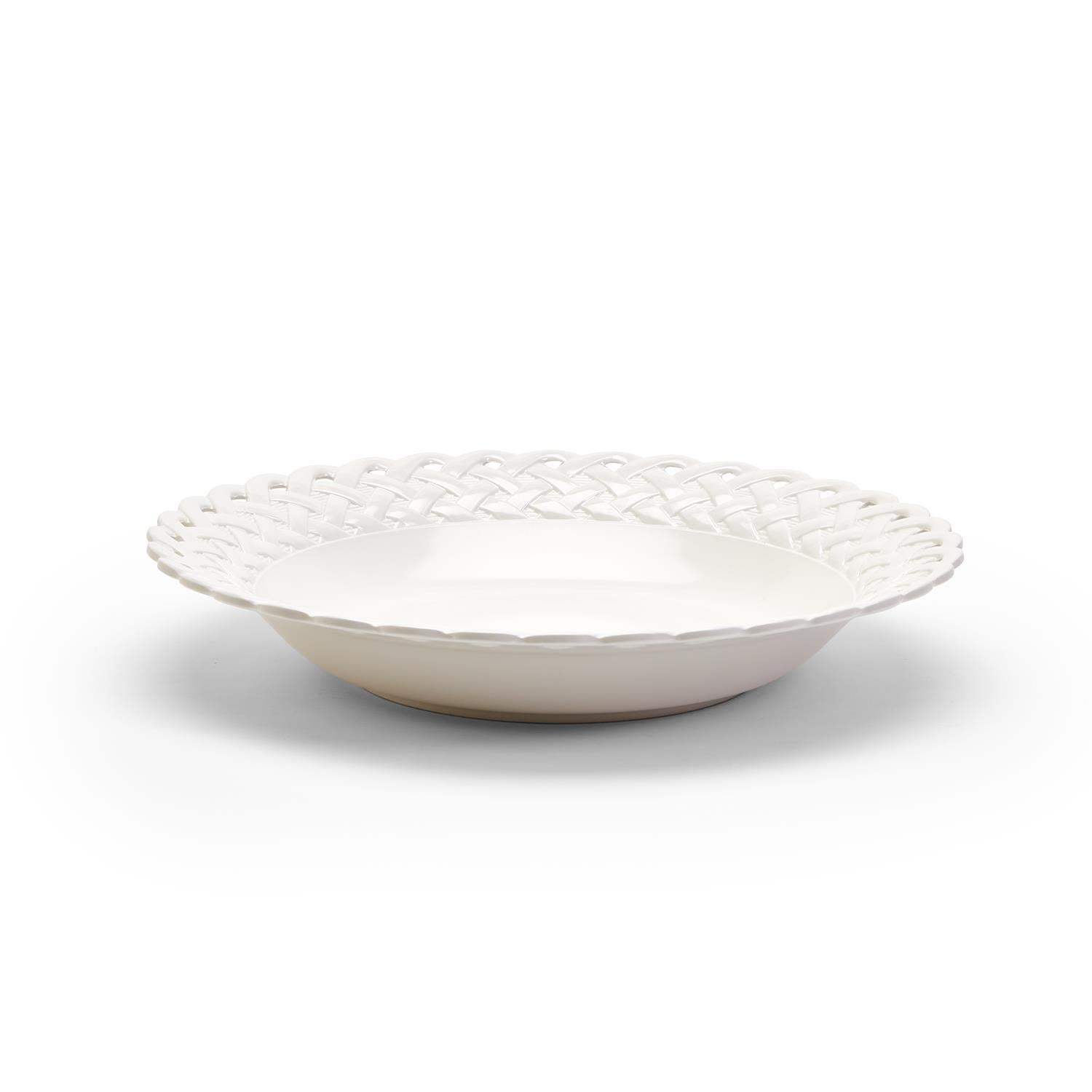 A wonderful piece designed to look great with a variety of table settings whether casual or festive. Large enough to serve up cake, cookies, cheese appetizer, hors d'oeuvres, and pastries. Featuring a lattice rim along the entire bowl.