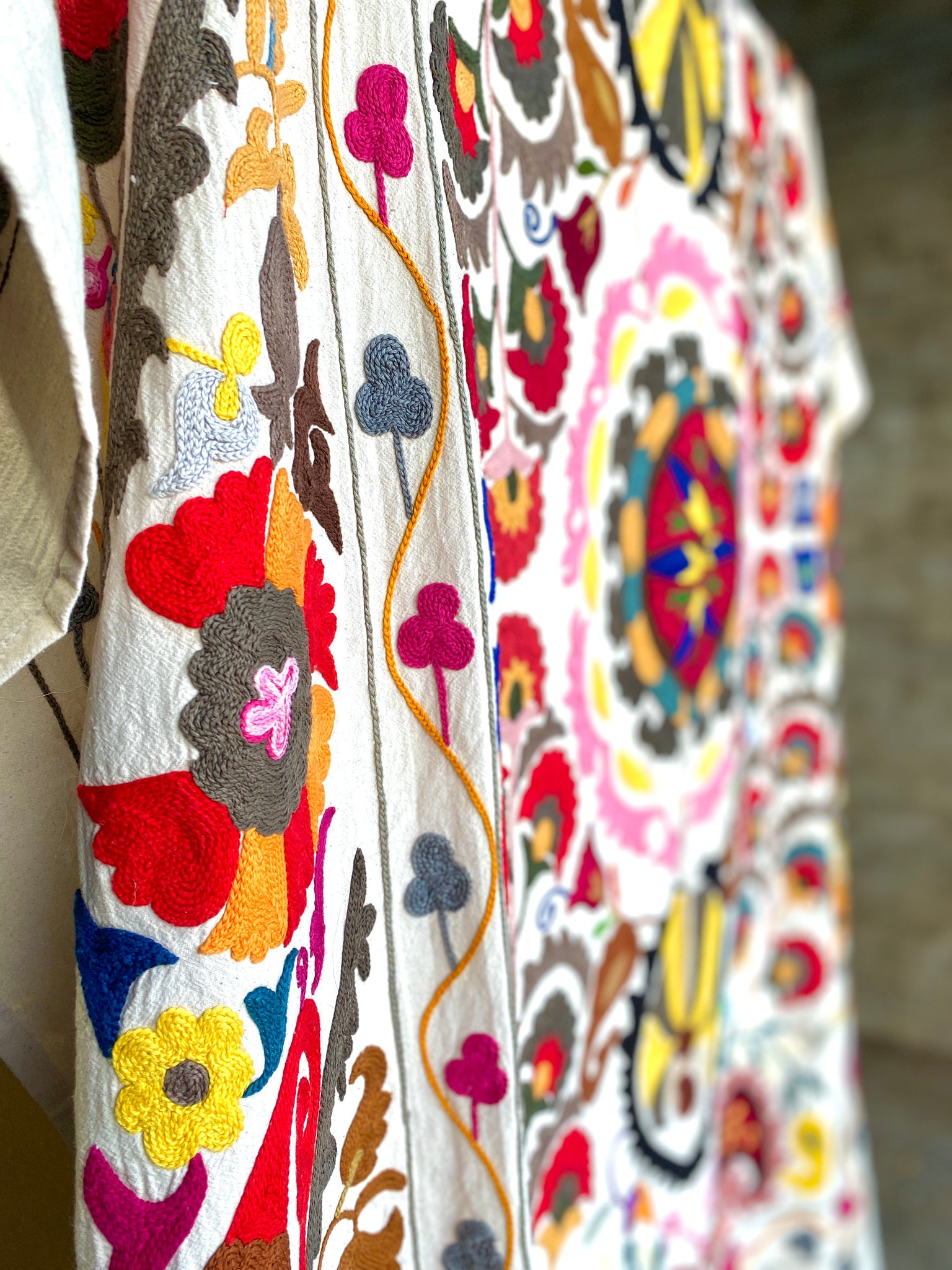 These gorgeous, one of a kind Suzani's will not be available for long! 1 available in each color way so grab them while you can!